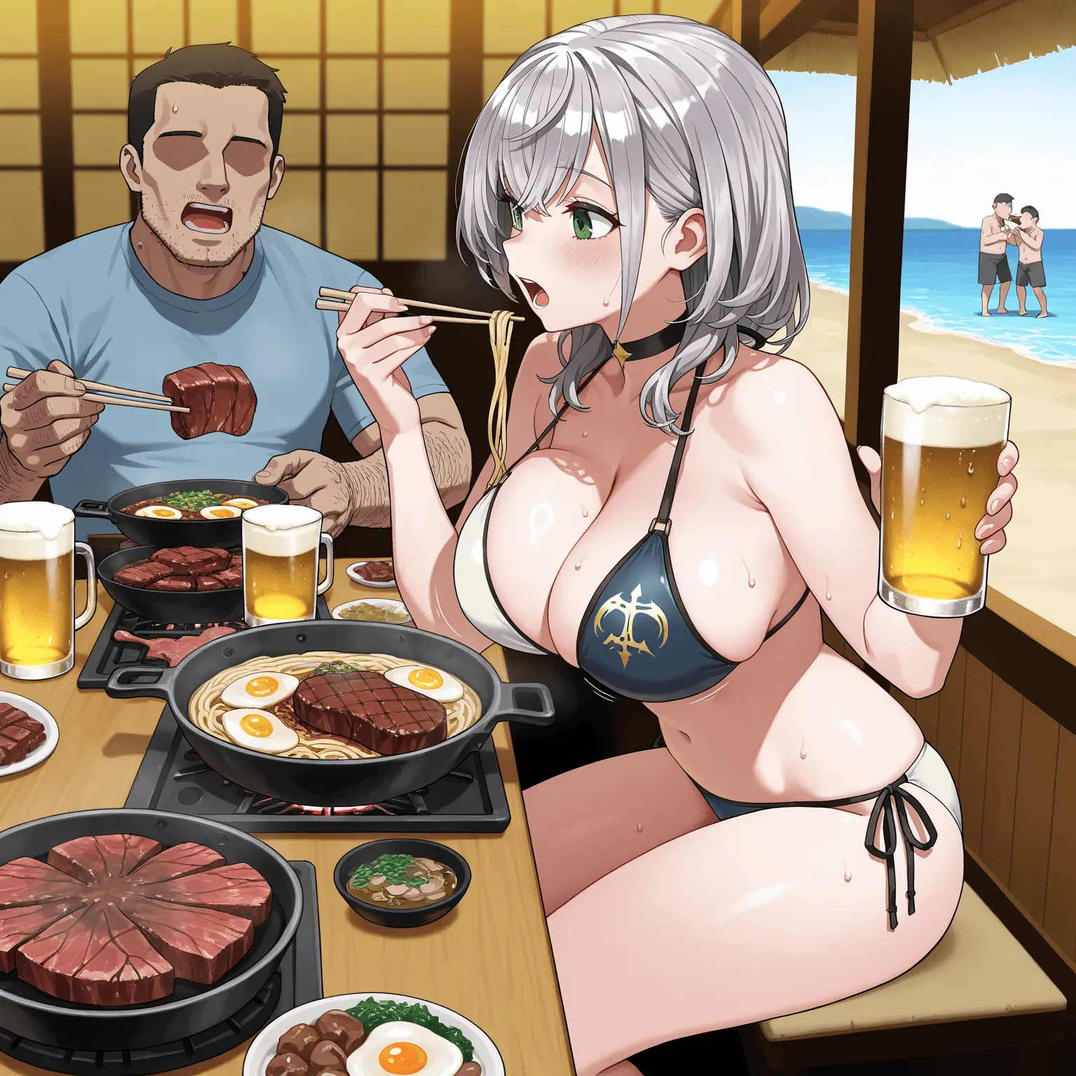 AIちゃん - 白銀ノエルのビーチで上半身裸男水着チャレンジ (126990594)